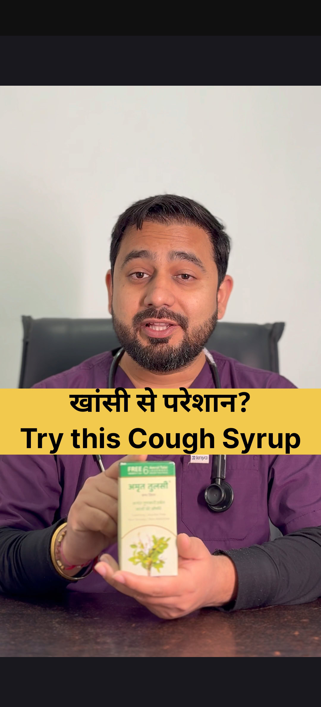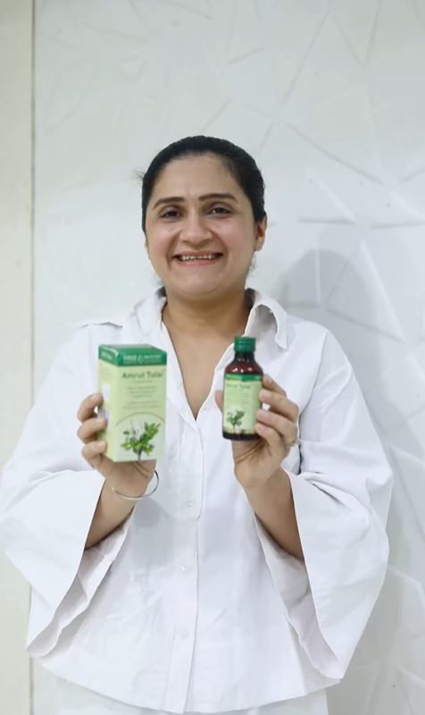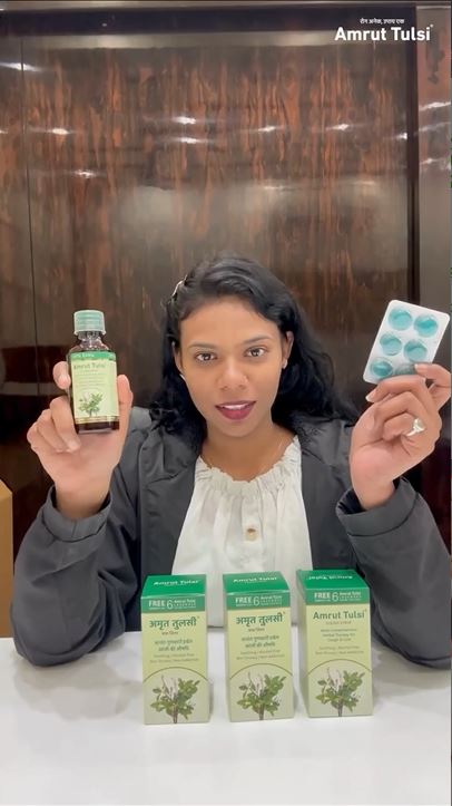 Doctor-recommended herbal relief for cough, cold, and sore throat —Amrut Tulsi works effectively.