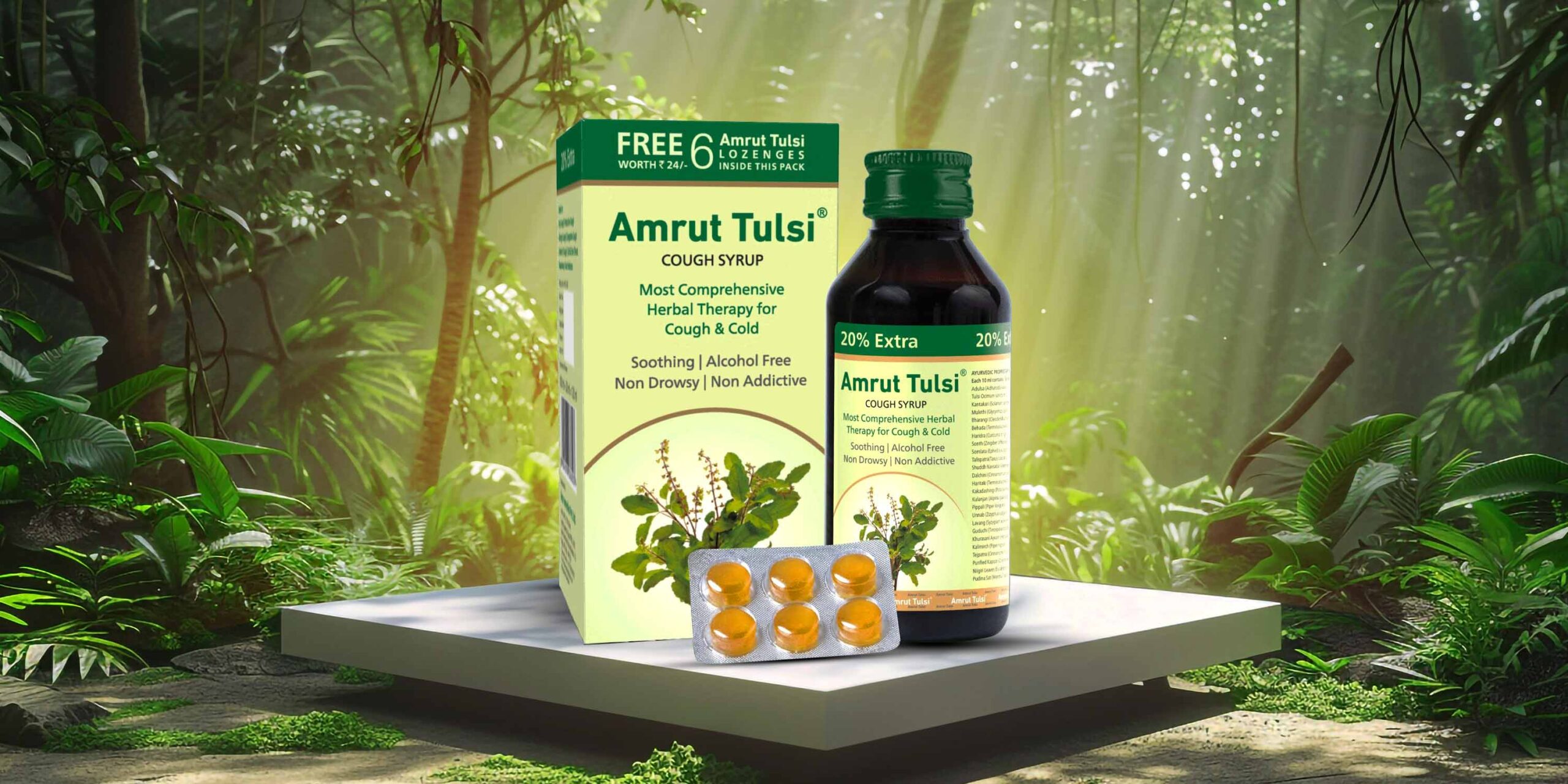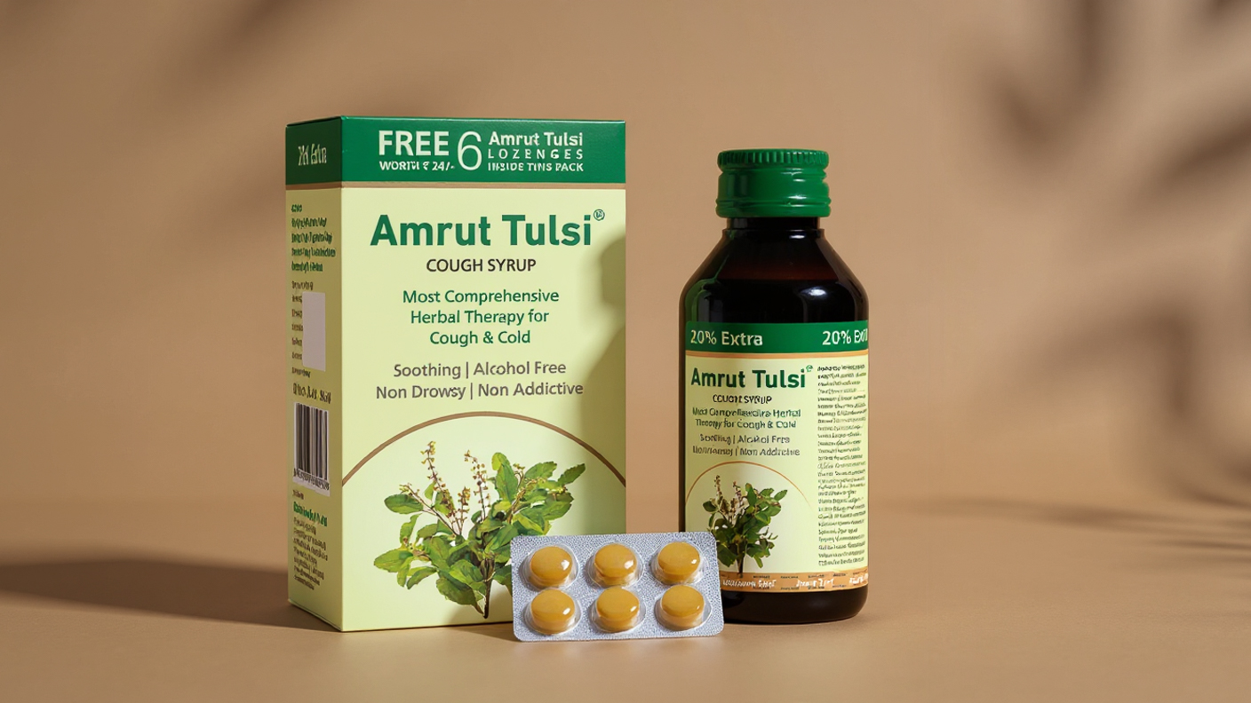 Amrut Tulsi Cough Syrup — Because every breath deserves comfort, and every family deserves care that feels like home.